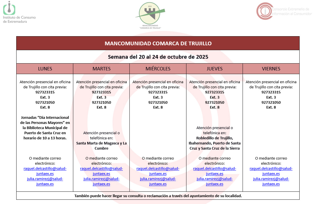 Calendario del Centro Mancomunado de Consumo del 20 al 24 de octubre de 2025. 17 octubre 2025 Calendario del Centro Mancomunado de Consumo del 20 al 24 de octubre de 2025.