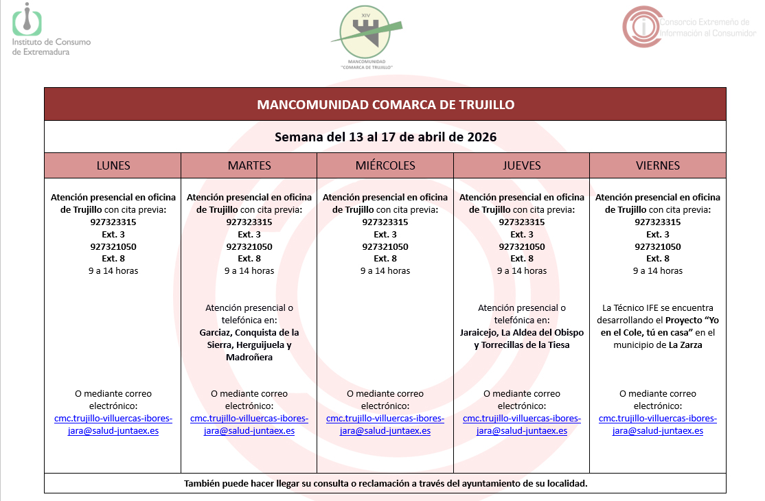 Calendario del Centro Mancomunado de Consumo del 13 al 17 de abril de 2026. 07 abril 2026 Calendario del Centro Mancomunado de Consumo del 13 al 17 de abril de 2026.