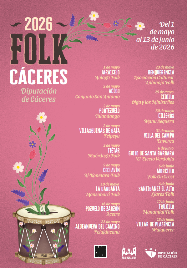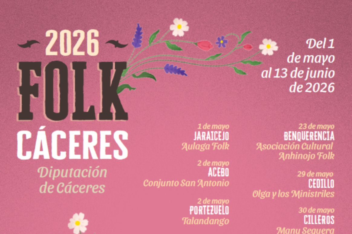 El Área de Cultura y Deportes de la Diputación Provincial de Cáceres tiene programada entre sus actividades para el año 2026 la ejecución de la VI edición del programa Folk Cáceres, un programa cultural donde la música folk es la protagonista.